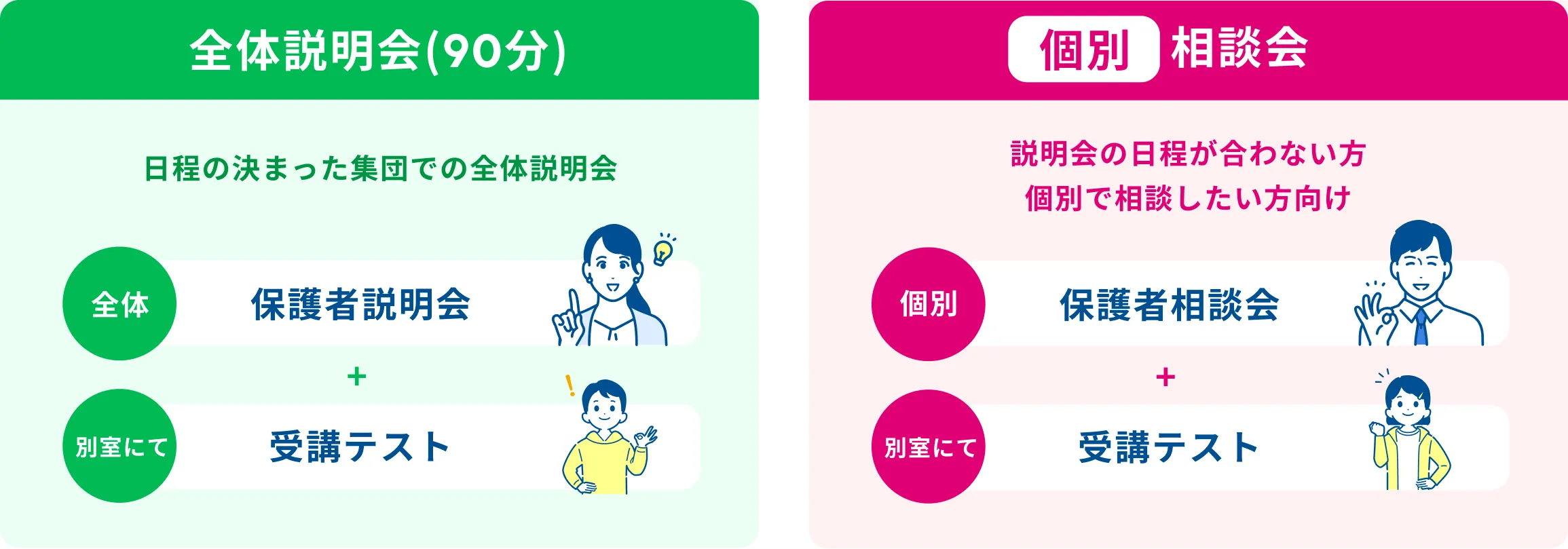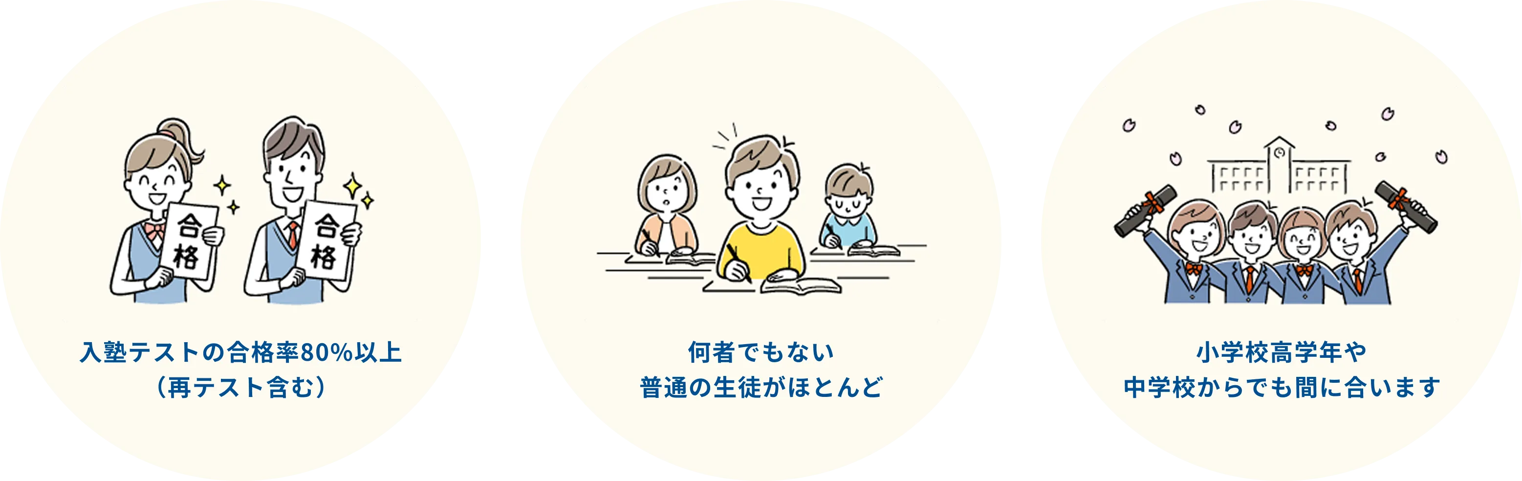 国語・数学・英語の入塾テストがあり、入塾には合格が必要です。