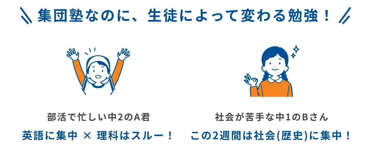 個別塾ではないけれど、何の教科を今は重点的にとか具体的に個別に指導してくださるので、集団塾はどうかな?と心配することは全くないと思います。